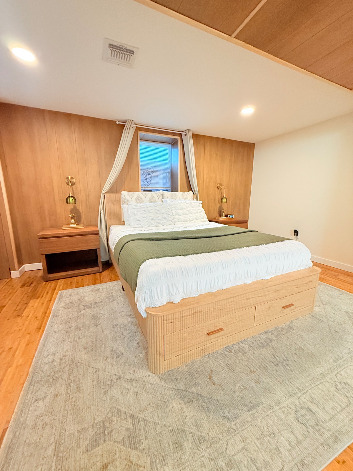 Suite privada recientemente renovada ubicada en el sótano con entrada privada y baño. La cama tamaño king tiene capacidad para 2 personas. Lámparas inteligentes y sillón reclinable de sofá eléctrico para mayor comodidad. Área de refrigerio ligero con microondas, nevera, mini tostadora, hervidor eléctrico y Keurig. Cerca del hospital Northwell y a 20 minutos a pie de la estación de tren LIRR. A 10 minutos en auto de todos los supermercados, tiendas, biblioteca y Stepping Stone Park. El anfitrión es muy alérgico a gatos y perros. ¡No se permiten mascotas!