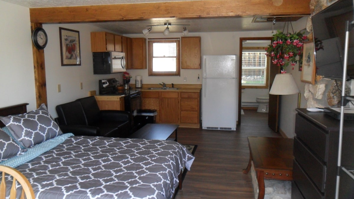 ¿Por qué reservar un hotel cuando puedes tener mucho más? Estudio nuevo, limpio y grande de 550 pies cuadrados, el doble del tamaño de una habitación de hotel promedio. Excelente ubicación en la ciudad, a pocos pasos de tiendas y restaurantes. ¡A 2 minutos en coche de Park Gate! Vistas al arco de Roosevelt y a la entrada de Yellowstone. Bar cafetería, mininevera, microondas, cama y ropa de cama prémium, wifi, TV de 52 pulgadas, Dish Network, Netflix y agua embotellada. Terraza y parrilla para barbacoa. Aparcamiento en la puerta principal con teclado. Registro de entrada autónomo. Lee las evaluaciones de nuestros huéspedes.