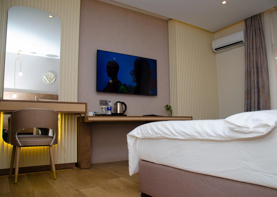 Experimenta lo mejor de Abuja en nuestra serena habitación que emite una energía edificante. Con una iluminación suave debajo de la cama y tonos cálidos, ilumina tu estadía para una experiencia verdaderamente relajante. Disfruta de una noche de sueño reparador en nuestra lujosa cama tamaño queen, mantente entretenido con televisión inteligente y Netflix, y mantente conectado con wifi rápido. Disfruta de un baño privado adjunto con calefacción para un baño cálido y acogedor y una mininevera. Perfecto para viajeros solos, escapadas, parejas y ejecutivos de negocios.