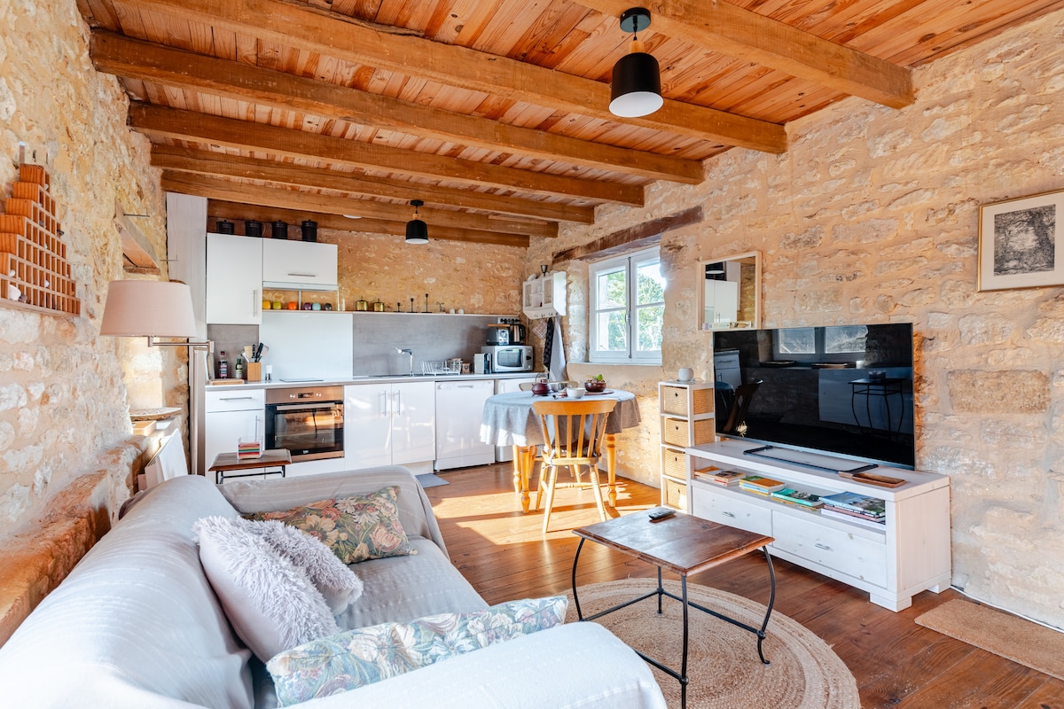 Un séjour unique au cœur du Périgord Noir dans une maison semi-troglodyte, mêlant charme rustique et confort moderne. Clim réversible dans chaque pièce. 📍 Localisation idéale : Situation exceptionnelle au cœur du Triangle d’Or du Périgord ! Idéalement situé proche de Sarlat et de Lascaux, cette maison avec cuisine équipée offre calme et sérénité. Ménage professionnel inclus. 💖 Ambiance romantique 🍷 Vin et Pâtés ☕ Café, 📶 Wi-Fi, gel douche, 🛁 serviettes et draps inclus. 🚗 Parking gratuit