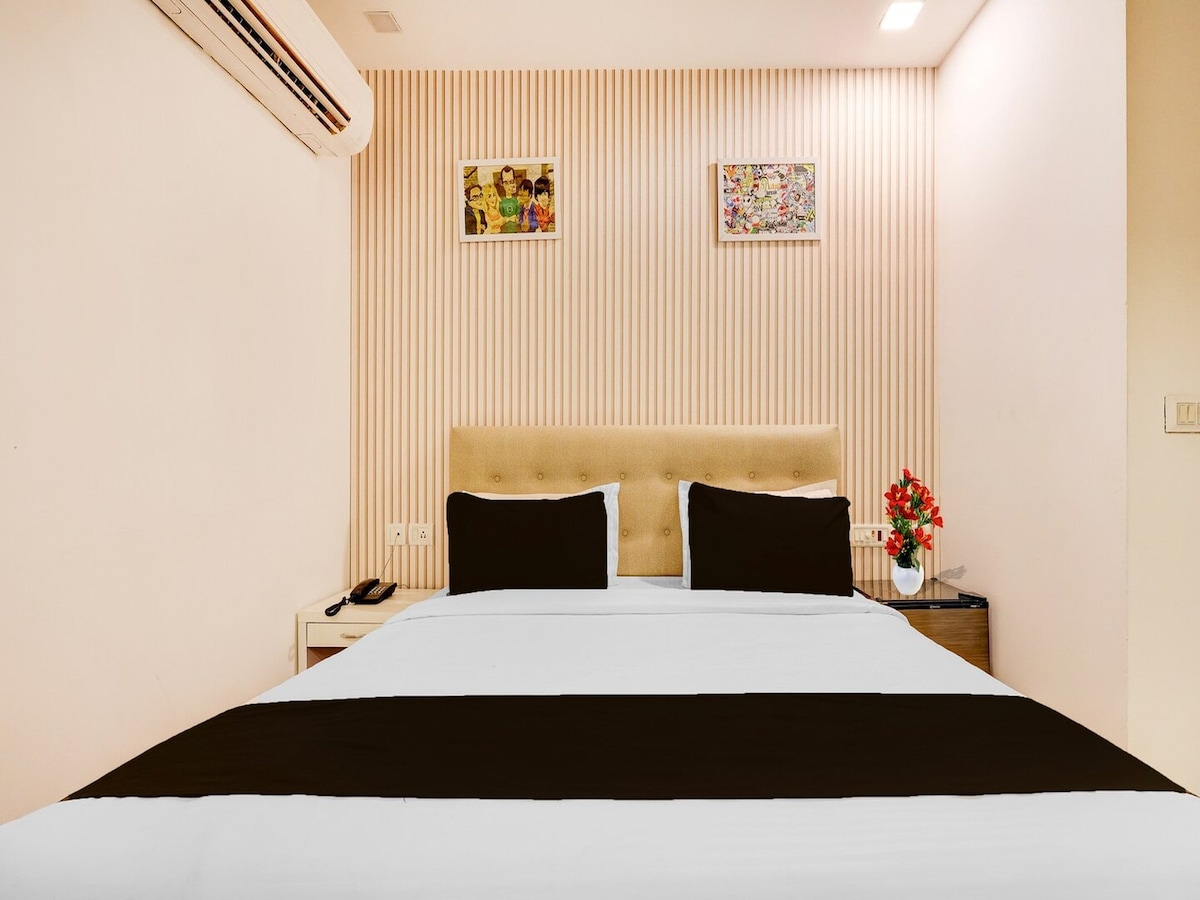 Es una habitación suite en un hotel boutique Royal Castle Grand C R Park. Características interesantes: - Cama de 6 pies de largo - 1 sofá cama - TV LED de 65" - Refrigerador de 500 litros - 8 asientos de sofá Ideal para una familia.