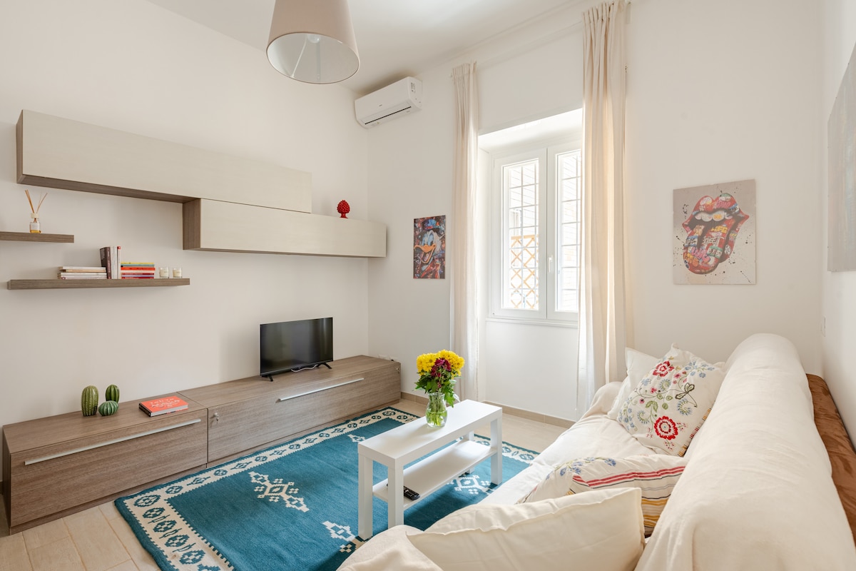 Davìta Ofrece un elegante y luminoso apartamento situado en el tercer piso de un antiguo palacio romano. Su singularidad radica en las encantadoras vistas del Castel Sant Angelo. El apartamento se encuentra en el corazón de la Ciudad Eterna, a pocos pasos de San Pedro y del centro histórico. Se encuentra en un punto estratégico con metro, restaurantes, coctelerías y tiendas de todo tipo. Desde Fiumicino se puede coger el cómodo Sit Bus Shuttle que se encuentra a la salida de la terminal 3 y para debajo de la casa.