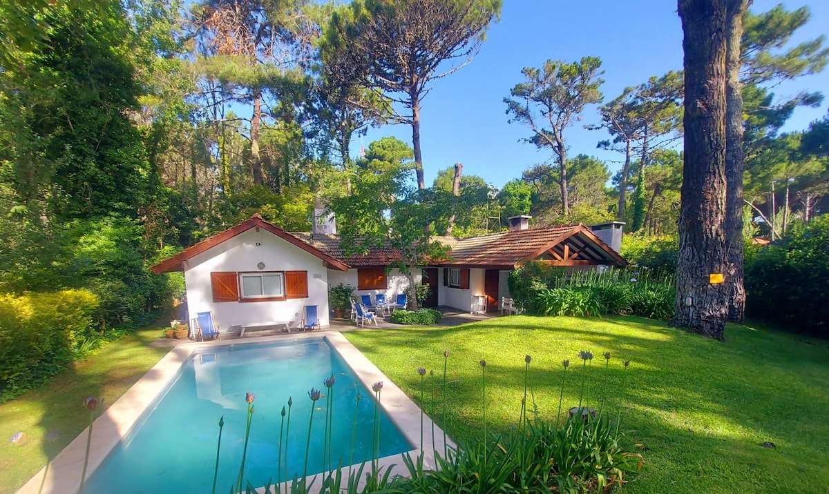 Ubicada en el corazón del bosque, esta moderna y elegante casa de una planta ofrece un refugio único, rodeado de árboles y la tranquilidad de la naturaleza. Con amplios espacios diseñados para disfrutar del entorno, podrás relajarte mientras contemplas increíbles atardeceres y escuchas el sonido de la fauna local. Pensada para disfrutar al máximo del aire libre, con una extensa galería semicubierta, piscina, parrilla y fogonero, donde podrás compartir momentos inolvidables con familia o amigos.