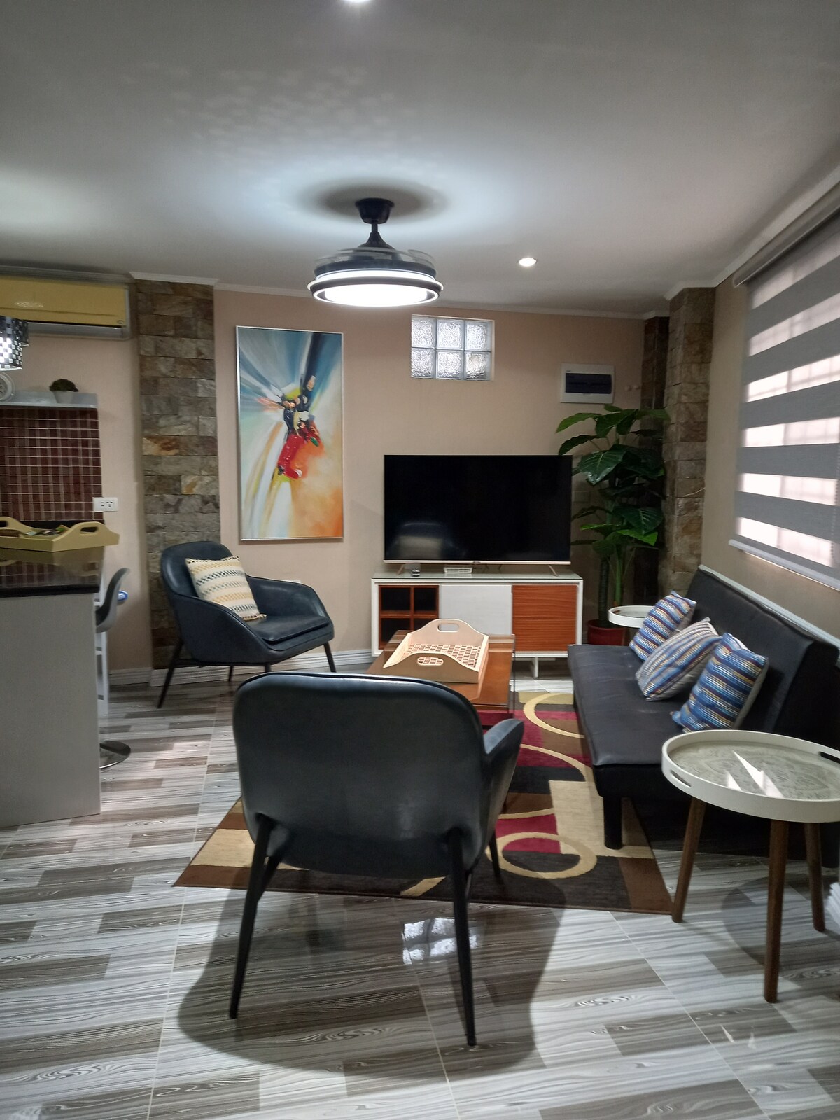 Liam Suite is your dream getaway with an Exclusive Director’s Club Cinema experience. Enjoy cozy comfort and next-level entertainment featuring a 75″ 4K Google TV, PS4 Pro, Samsung surround sound, and cinematic recliners—all in one stylish studio. PLUS a SONY videoke and speaker with a JBL wireless microphone for your sing-along night. Perfect for couples, barkadas, or families! 📍 Located beside SM City Trece, near the Cavite Capitol, Government offices, and public market & transportation.