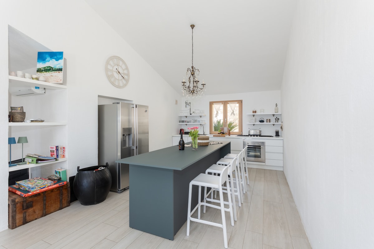 Una villa de campo totalmente independiente con total privacidad, un gran jardín privado y vistas abiertas al campo, a las afueras de Orosei. Tranquilo y espacioso incluso en pleno verano. La playa está a 18 minutos a pie por un camino plano. ✓ Villa totalmente independiente, sin espacios compartidos ✓ Amplio jardín privado con olivar, 5000 m² ✓ Apto para familias y perros ✓ Construido en 2017, renovado en 2024 ✓ Playa a pie, 18 min