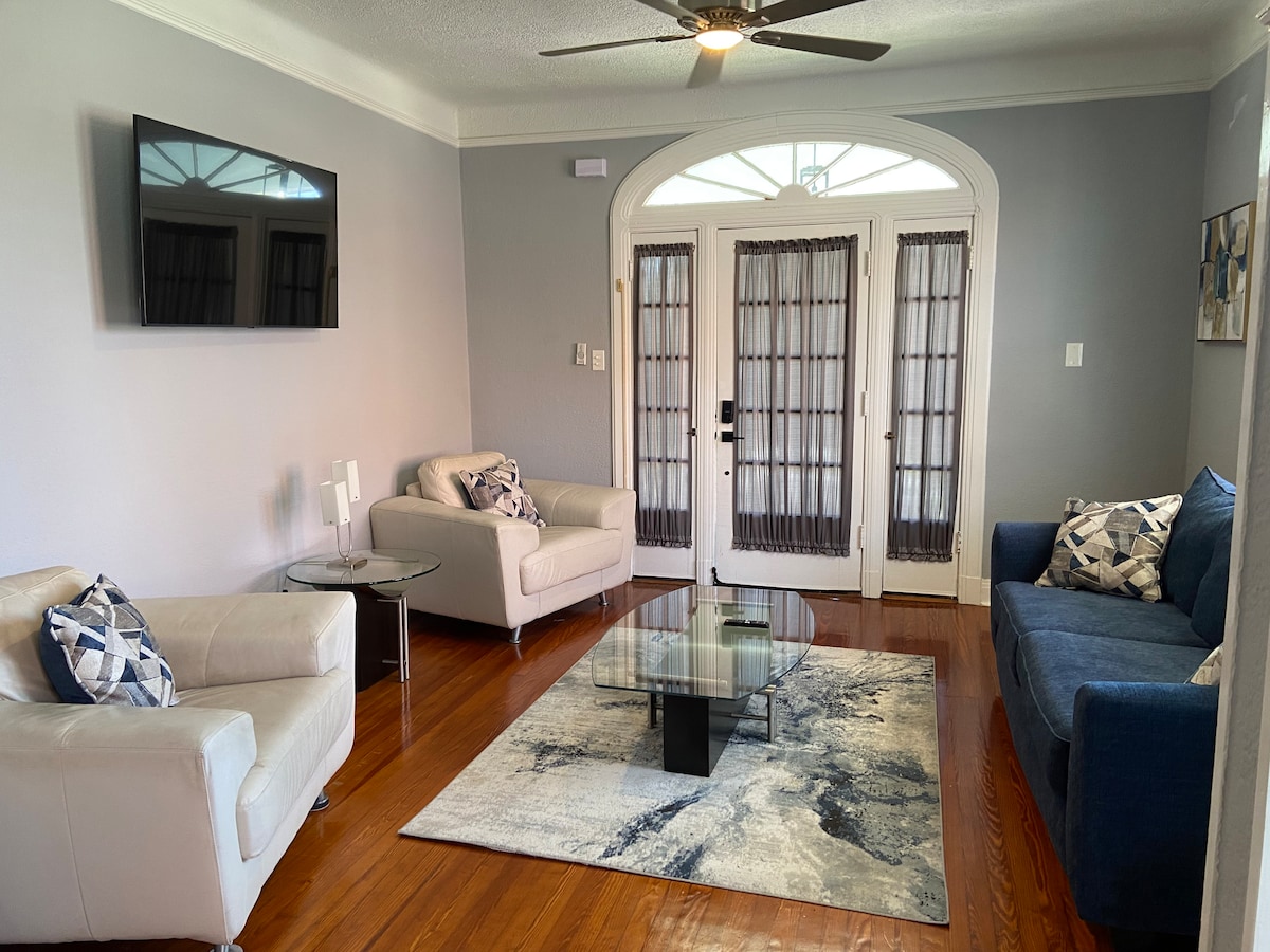 Historic 2-bedroom house with BRAND NEW renovation! Our space has everything you need for your New Orleans trip. The unit comes with central HVAC, a washer and dryer, a dishwasher, and free on-street parking. We are a few blocks from a Robért grocery store, Starbucks, and several popular Marigny & Bywater bars and restaurants. 5 min walk to Frenchmen Street. 15-minute walk to the French Quarter and Bourbon St. A short car or bike ride to the Ernest Moral Convention Center, and the Superdome.