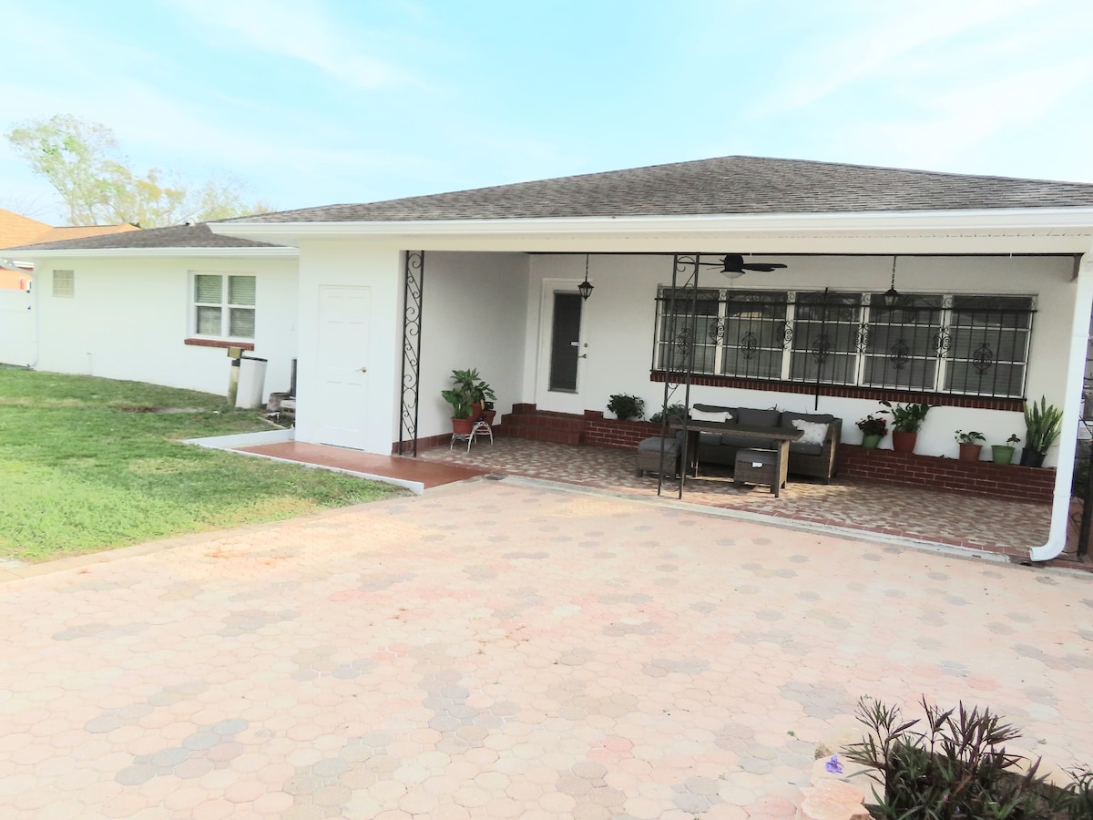 Encantador estudio privado a pocos minutos del estadio Raymond James. Disfruta de una entrada privada, zona exterior amueblada, cocina pequeña, aire acondicionado, TV inteligente y estacionamiento gratuito (para 2 puntos). Perfecto para viajeros de negocios o de placer que asisten a eventos locales. Ubicado convenientemente cerca del aeropuerto y el centro de la ciudad. Relájate en un espacio tranquilo y bien equipado con llegada autónoma, sábanas limpias, café y todo lo esencial para una estancia agradable. Excelente ubicación, vecindario seguro y wifi rápido incluido.