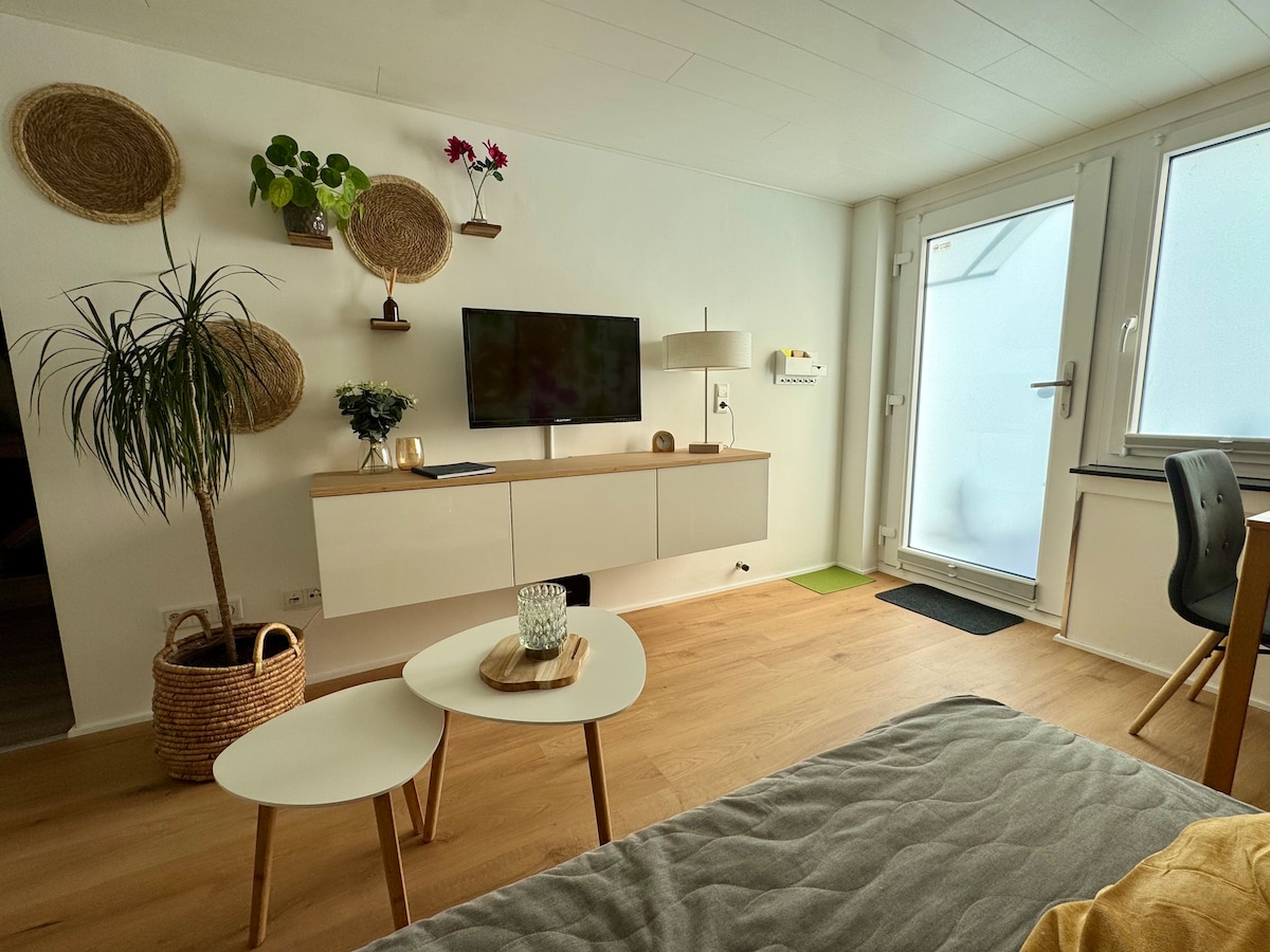 En aproximadamente 25 metros cuadrados encontrará un acogedor apartamento con sala de estar/dormitorio combinada, una pequeña cocina y un baño con ducha. El apartamento es adecuado para una o dos personas o estancias cortas con niños pequeños. Si lo desea, podemos proporcionarle una cuna de viaje. Nuestro servicio todo incluido incluye toallas de cocina, toallas y ropa de cama limpia. Si su estancia es más larga, por supuesto, recibirá toallas y paños de cocina limpios de nuevo a petición.