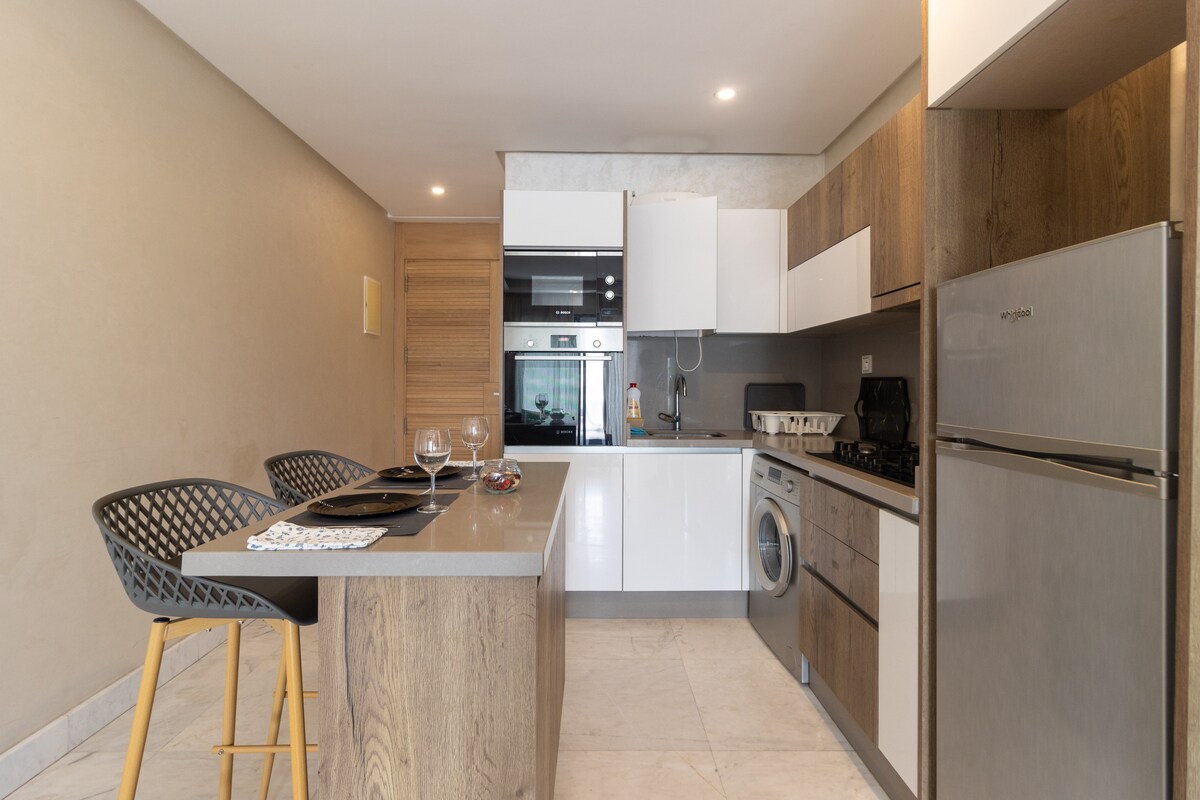 ¿Quiere disfrutar de un entorno lujoso y tranquilo? Está en el lugar adecuado. Nuestro estudio a estrenar, con una superficie de 52 metros cuadrados idealmente situado en el corazón de Casablanca, está equipado con una cómoda cama doble, una zona de estar con sofá, una cocina totalmente equipada y un moderno baño con ducha. Podrá disfrutar de conexión Wi-Fi de alta velocidad gratuita, TV inteligente de pantalla plana y aire acondicionado reversible para un confort óptimo.