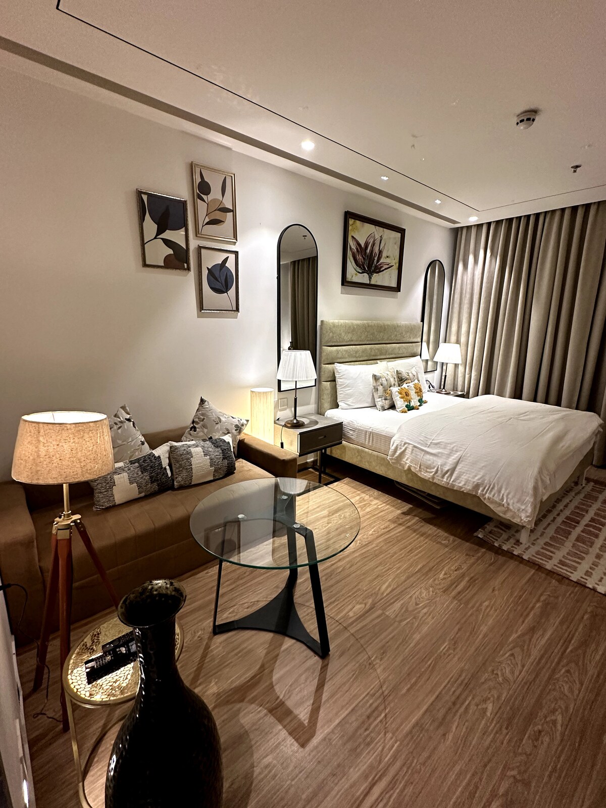 Bienvenido a tu hogar lejos de casa: el lujo se une a la tranquilidad en nuestro exquisito apartamento con servicio de estudio en el vibrante corazón de Gurugram. Ubicado en medio de una exuberante vegetación y deslumbrantes luces de la ciudad, este refugio contemporáneo está diseñado para aquellos que buscan la combinación perfecta de comodidad y sofisticación.