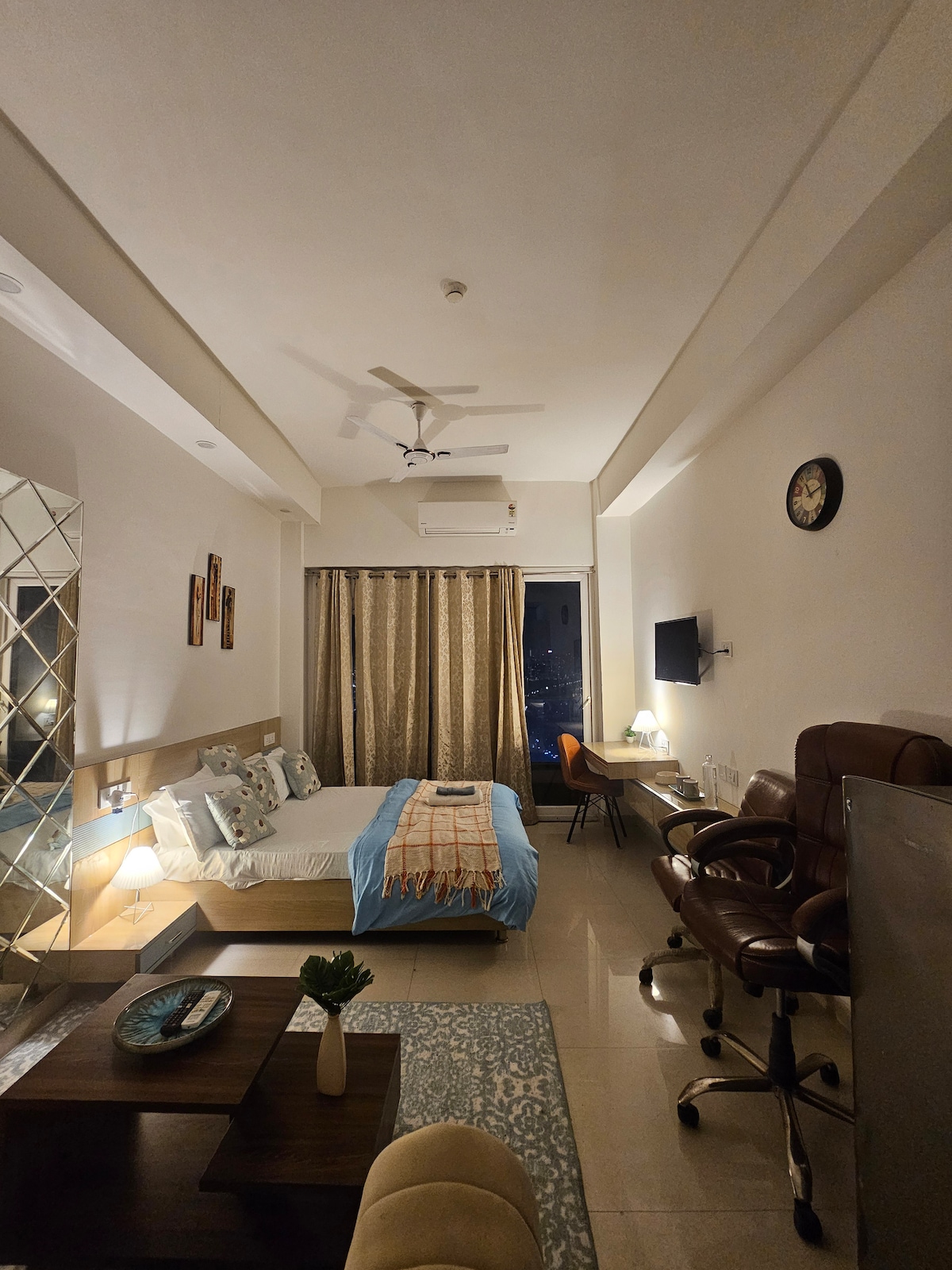 Stylish and cozy 1-BHK with a king bed, bright living room, Smart TV, and fast Wi-Fi. Enjoy a fully equipped kitchenette, clean bathroom, and complete privacy. Located in a safe building near Noida Sector 62/63, metro, cafes, and markets. Perfect for couples, solo travellers, business guests, and small families looking for a comfortable and peaceful stay. To maintain a peaceful environment for everyone, we do not allow any celebrations, parties, birthdays or gatherings at the property.