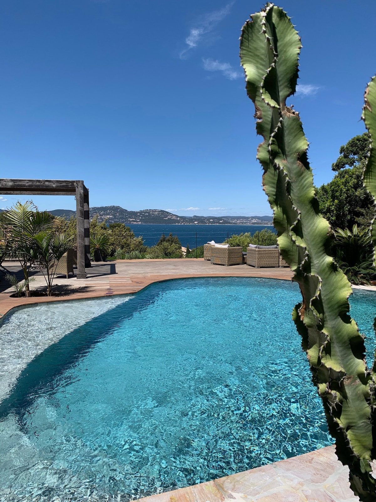Alojamiento muy amplio de 220 m2 en mi villa en las alturas de Hyeres en una zona residencial . Acceso exclusivo al jardín arbolado y florido, así como a la piscina Vista excepcional de las islas y la ciudad de Hyeres Una agradable pérgola le permitirá comer a la sombra y si hace un poco más fresco , puede instalarse bajo una amplia terraza. El estacionamiento es fácil en la calle cerca de la casa.