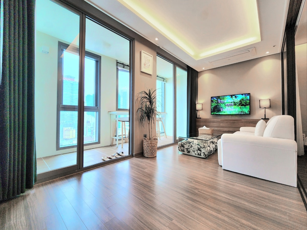 L14 [Alojamiento nuevo y moderno] [Centro de la ciudad/5 minutos de la playa de Haeundae/3 minutos de la estación de metro/almacenamiento de equipaje/purificador de agua/OTT]