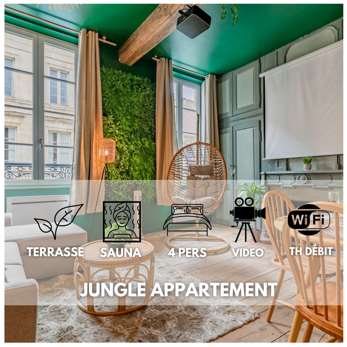 🌴 Love room immersive & cocon bien-être aux portes de Bordeaux - Balnéo XXL & cinéma privé Bienvenue au Chazélia - Pause Exotique 🌿 Un cocon chic pensé comme un voyage • Fresque tropicale, • Mur végétal avec balançoires • Balnéo double XXL façon jacuzzi • Cinéma privé avec vidéoprojecteur • Lit king size ultra-confort • Ambiance lumière tamisée • Cuisine équipée • Petite terrasse extérieure • Stationnement gratuit dans la rue ou résidence Idéal pour une parenthèse dépaysante à deux ✨