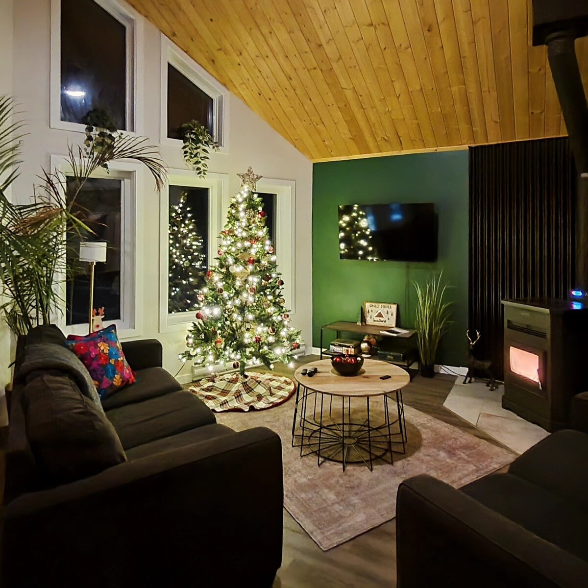 Escape to Octagon Oasis—where comfort meets fun in every season. Swim in the indoor pool, relax in the hot tub or sauna, and enjoy games like foosball, table tennis, air hockey, and karaoke. Cozy up indoors or play outside on the mini disc golf course. Only minutes from the lake, it’s the ideal spot for family getaways, fishing trips, or peaceful weekends.