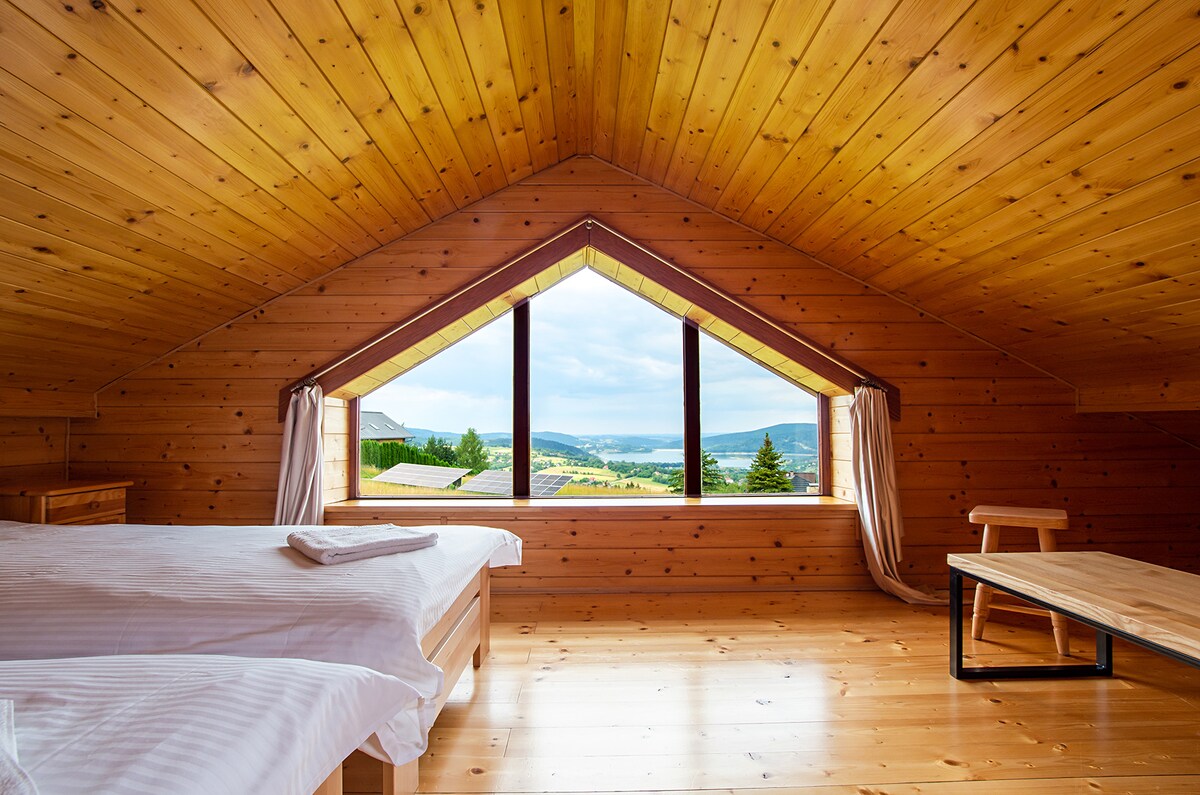 Te damos la bienvenida a tu refugio de montaña con vistas al lago Mucharskie, ¡perfecto para familias y grupos que buscan comodidad y aire fresco alpino! Disfrutá de terrazas panorámicas, interiores espaciosos y servicios para familias: - Capacidad para 11 adultos y 2 niños | 4 dormitorios | 9 camas | 3 baños - Sauna finlandesa y gimnasio totalmente equipado - Sala de estar con chimenea, TV de 55 pulgadas y karaoke - 3 terrazas y jardín grande con parrilla - Lavadora, wifi, cocina y comedor - Admite mascotas.