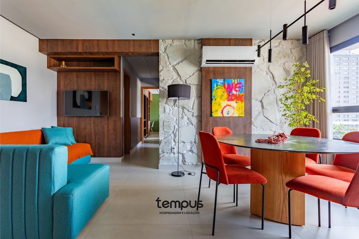 ❗️Un nuevo🤩 condominio único, elegante y sofisticado, hecho para que te sientas como en casa. Mira tu película favorita en el dormitorio o la sala de estar en el televisor inteligente giratorio más moderno con aire acondicionado, mesa de comedor y espacio de trabajo. ¡Descansa en la mejor cama, deleita con la ducha más deliciosa, disfruta del balcón y de una hermosa puesta de sol con vistas al parque y disfruta del contemporáneo Setor Bueno en la mejor región de Goiânia ! Condomínio Tai Residências