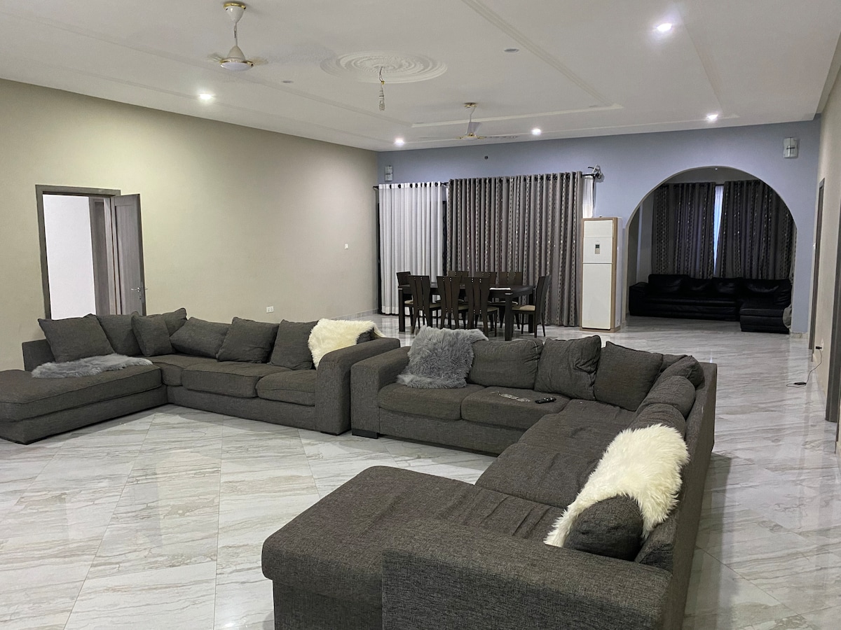Forget your worries in this spacious and serene space.Located in a very popular and central location in Accra, Gbawe. We offer you extreme value for money with this ultra modern home where you can get away with friends and family for both work and relaxation. Only about 20min drive to West Hills Mall and about 30 min drive from the Airport. The road leading to our home is a bit buggy but the comfort that awaits you will make it worth it. Electric fence cable and 24/7 CCTV for extra security