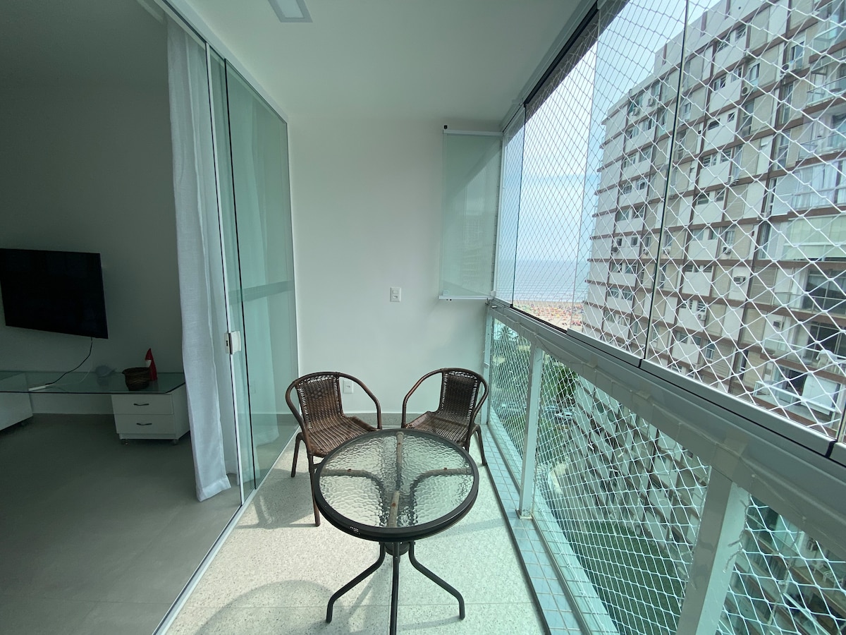 Flat em frente ao Mar c/ piscina, varanda e A/C.