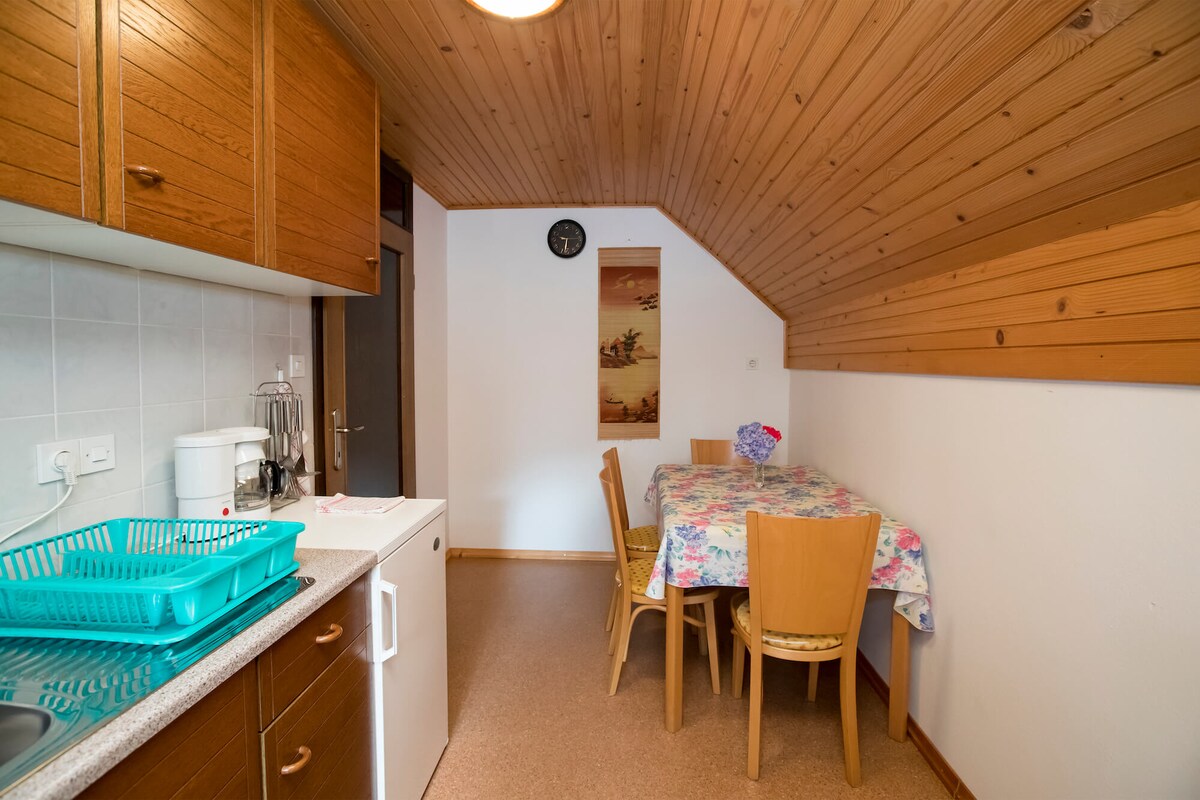 El apartamento se encuentra en el pueblo de Koprivnik, en el parque nacional de Triglav, a 975 metros sobre el nivel del mar. Esta parte de la región de Bohinj es conocida por su clima único, que tiene un impacto curativo en el sistema respiratorio. El tiempo aquí fluye lentamente, la gente local es muy hospitalaria y los alrededores son preciosos. La ubicación es perfecta para personas que les gusta estar activas, que les gusta la naturaleza y que solo quieren escapar del bullicio de la ciudad y salir del estresante ritmo de la vida cotidiana.