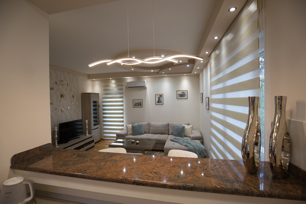 Osetite luksuz i mir u našem potpuno novom, prostranom apartmanu sa prelepim pogledom na planine i brda. Ovaj elegantno namešteni stan nudi mirno bekstvo od obaveza, sa svim sadržajima potrebnim za osvežavajući boravak.