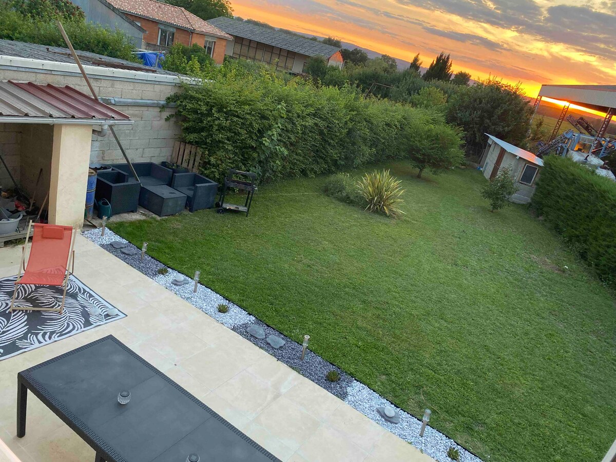 Estamos encantados de recibirle en este rincón de la naturaleza situado a 5 minutos de Pont de Vaux en el corazón de Bresse. Encontrarás tranquilidad y serenidad y disfrutarás de un amplio jardín y una terraza. La casa consta de dos dormitorios, una cocina abierta a la sala de estar, un baño y un altillo. La Bresse ofrece un rico patrimonio que le seducirá (viñedos, castillos, vía verde, etc.).