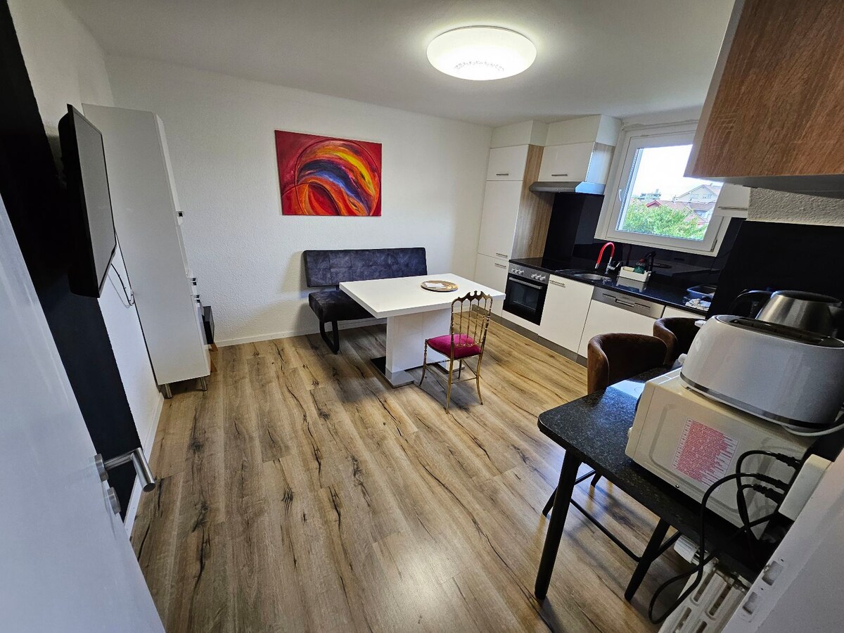 Relájate en este moderno refugio de 3 dormitorios a solo 15 minutos de Aarau, con conexiones fáciles a Zúrich, Basilea y Berna. Ubicado junto a las montañas Jura y a solo 3 minutos del Golfclub Heidental, es perfecto para trabajar o descansar. Disfruta de wifi rápido de fibra de 1 Gbps, TV inteligente, cocina completa, lavadora/secadora y estacionamiento gratuito. Tranquilo, espacioso, ideal para familias y viajes de negocios, el punto de partida perfecto para relajarse, recargar energías o explorar Suiza.