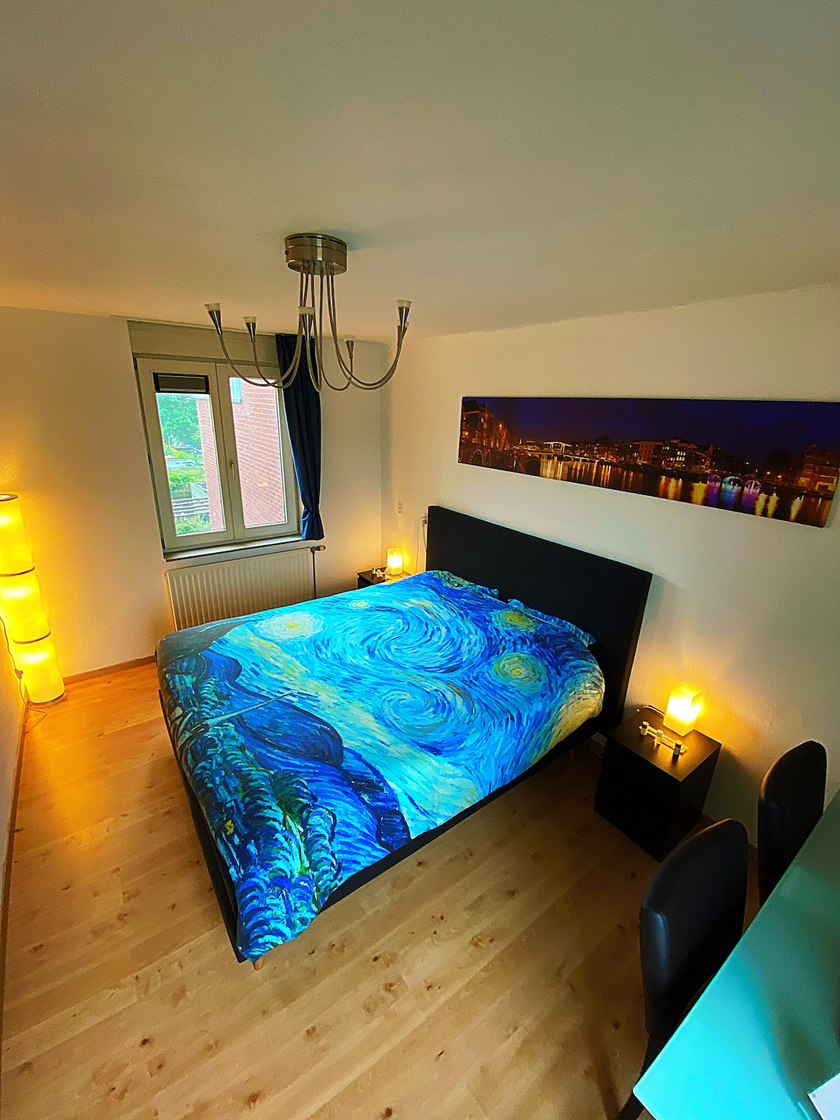 Cómoda habitación con excelentes conexiones con el casco antiguo, la casa de Ana Frank (25 min) y el barrio de los museos (30 min). Tendrás que subir la escalera hasta tu habitación con una cama doble de lujo de 160 x 200 cm. Hay un baño de lujo con ducha inteligente que tendrás que compartir, pero te proporcionaré albornoces, zapatillas y artículos de ducha. Nevera en el pasillo, así como una pequeña biblioteca con libros históricos sobre Ámsterdam. Las habitaciones están en una zona tranquila. No sirvo desayuno.