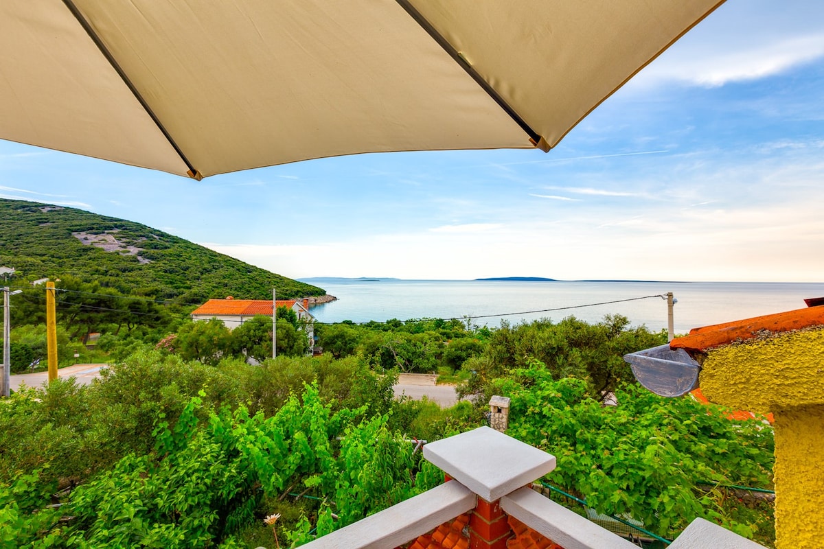 Apartamento de 2 dormitorios para 4 personas con gran terraza con hermosas vistas a la isla de Cres. El apartamento está situado en el primer piso de la casa con entrada independiente. Cerca del mercado del pueblo y de la playa (550 m). El wifi, el aire acondicionado y el aparcamiento son gratuitos.