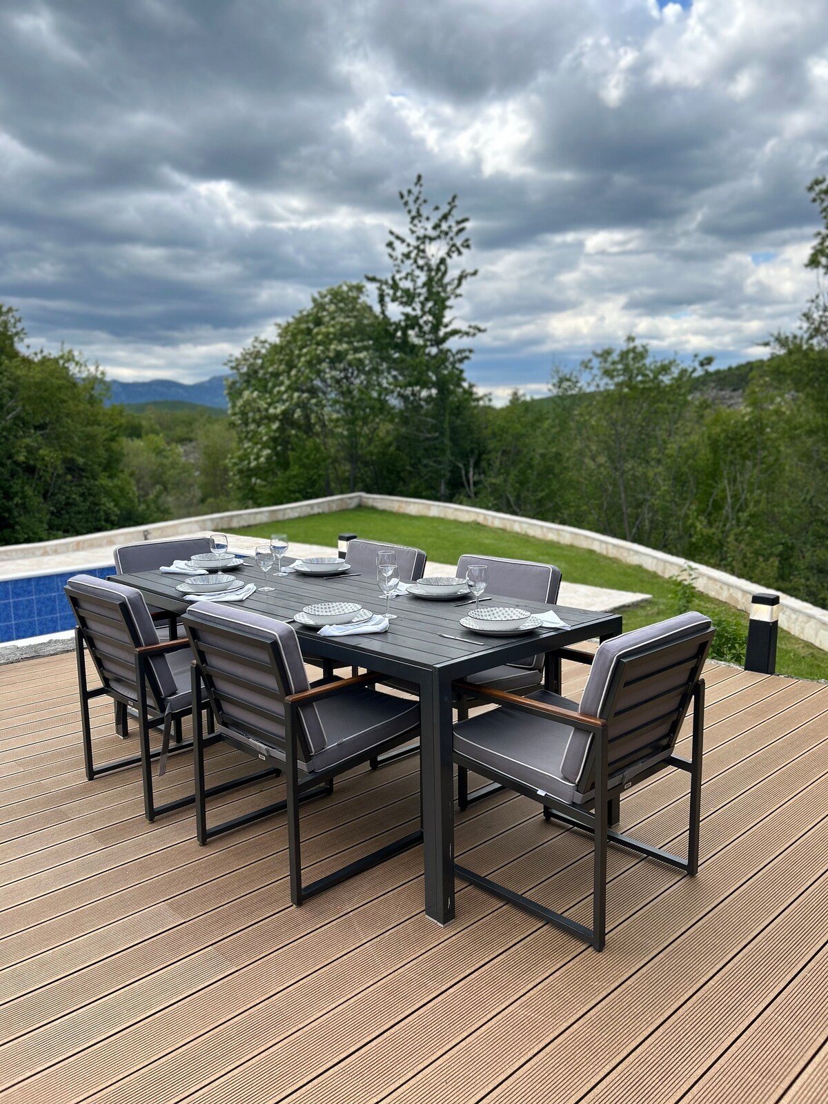 U Dalmatinskoj Zagori smjestila se ova prostrana vila,spoj moderne i tradicionalne arhitekture. Sastoji od 5 bracnih soba,3 dnevna boravka,5 kupatila,prostrane kuhinje,salona za zabavu (biljar,pikado,stolni nogomet),igralista za odbojku na pijesku,stol za stolni tenis, mini golf s 12 rupa, djecjeg igralista, prostranog,vanjskog bazena (100m2),natkrivenog parkinga za 3 vozila. Villa se nalazi daleko od gradske buke,a opet dovoljno blizu svim vaznim sadrzajima. 5800m2 vaše privatnosti