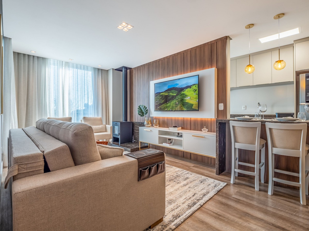 ¡Este increíble apartamento de alta gama ha sido completamente rediseñado! ¡Ofrece 180m2 y elegancia en cada detalle, grandes ventanales con vistas panorámicas exclusivas al valle de Quilombo, 70"Smart TV en la sala de estar y 43" en dos dormitorios! Además, ¡está a solo 2 cuadras de la calle Coberta! Debido a que se encuentra en el centro, podrás hacer muchas cosas a pie, ¡tendrás la comodidad de dejar el auto y contemplar con paz y tranquilidad todo lo que Gramado tiene para ofrecer!