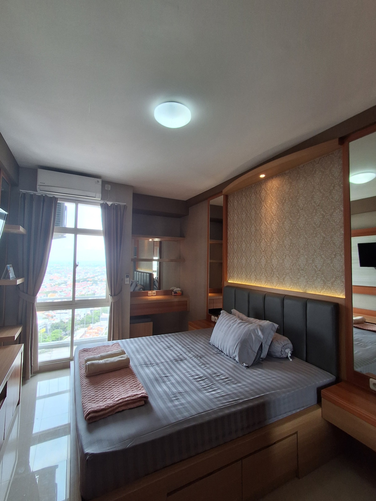 Un apartamento estudio cómodo y elegante, unido al centro comercial más grande de Surabaya. Fácil acceso al supermercado, todo tipo de restaurantes y cerca de algunos de los cafés más de moda de la ciudad. Este lugar tiene todo lo necesario para tu estancia: una cama grande, ducha caliente, Netflix, TV, wifi y nevera. El horario de llegada y salida puede ser flexible (llegada anticipada a partir de las 10:00 o salida después de la hora establecida hasta las 14:00) siempre y cuando no haya otro huésped que venga o se hospede antes. Hay cama supletoria disponible. Nos vemos 😁