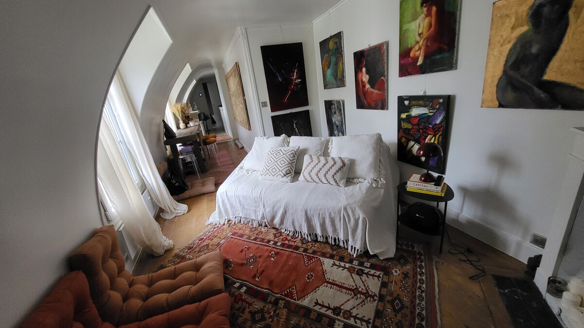 Peaceful and private hideout at the foothill of Montmartre. This unique appartement has been home and inspiration for world famous painters, poets and film makers. Equipped with: cozy Queen-size bed, with all natural fabrics, kitchen corner, a bathroom and WC. On the small balcony you can eat or read outside and look at Paris' roofs. The mural painting is from one of Latin America’s greatest masters, Guillermo Olguin. The gifted interior designer is also your co host, Victoria Senoret.