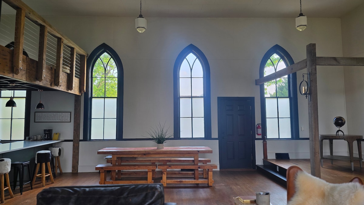Adentrate en un refugio lleno de alma en esta iglesia rural restaurada de la década de 1860, ubicada en el corazón de la región única de Driftless, en el suroeste de Wisconsin. A pocos minutos del Dubuque Millwork District & River Museum, la histórica Galena, la cervecería Potosi y la Universidad de Wisconsin Platteville, este refugio sagrado ofrece vistas tranquilas al campo y un encanto atemporal. Un refugio sereno donde las almas afines, los soñadores y los viajeros pueden descansar y quedarse un rato, cerca de la emoción, pero a un mundo de distancia.