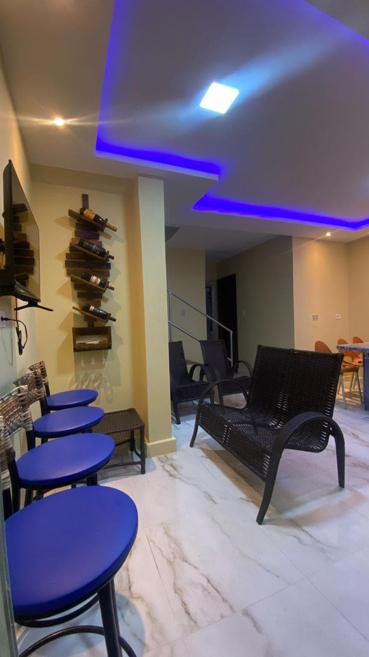 Relájate con toda la familia en este alojamiento tranquilo,con toda la comodidad de un chalet de tres dormitorios con tres dormitorios y tres suites completamente amuebladas en una comunidad cerrada con piscina,campinho,mina granja, parque infantil,presa,huerto,estacionamiento para más de un coche. Se encuentra en la cima de una cordillera con una vista panorámica y una temperatura agradable durante todo el año. Conoce el forró de la Bodega do Véio,el poste gastronómico,las artesanías locales, los recorridos por el cuatriciclo y el hada del mirador Serra Negra.