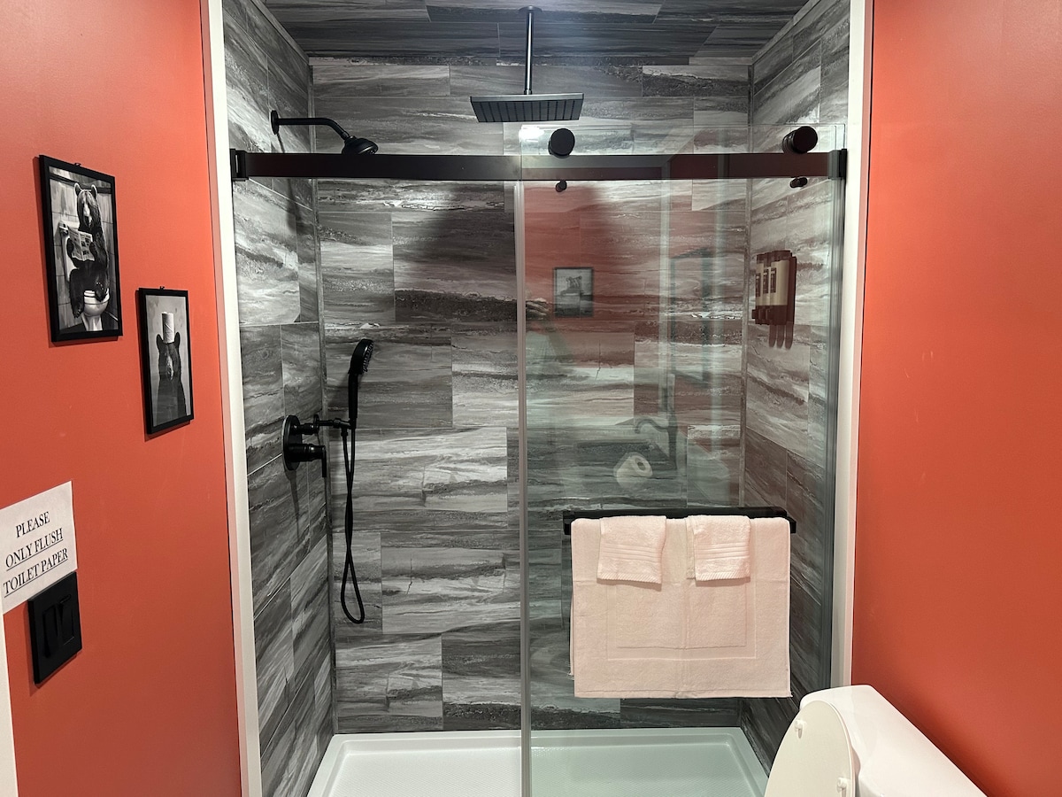 Welcome to your private in-town escape. This spacious 500 sq ft open-concept stay blends modern style with Cozy comfort. Unwind in a plush king-size dream bed, refresh in the Spa-like Rainfall Escape shower with endless hot water, and sleep soundly with room-darkening blinds. Centrally located but designed to feel private and peaceful. With generous parking—boats and trailers are always welcome. Whether you’re here to relax or explore, this space was made for comfort.
