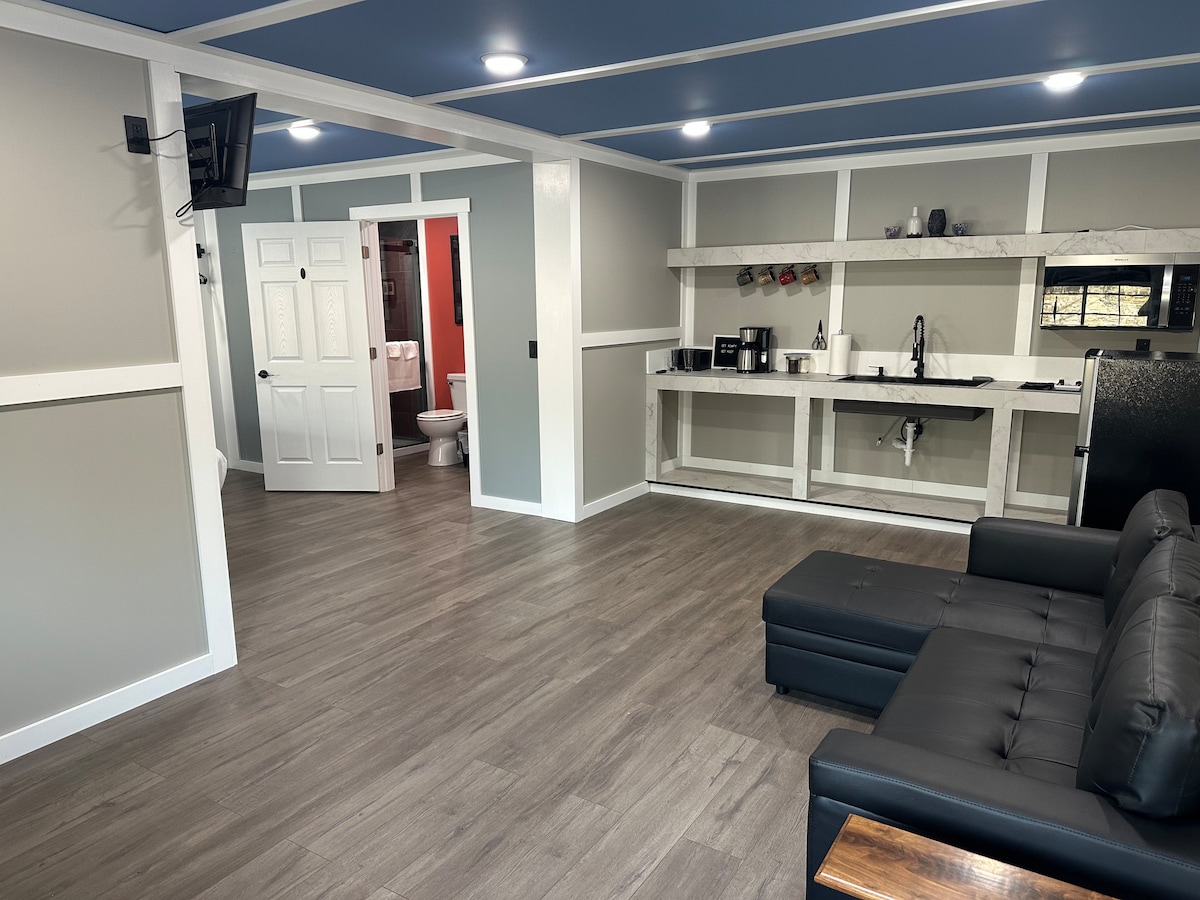 ¡Ahora ofrece INTERNET DE ALTA VELOCIDAD! Ven a escapar a esta tranquila escapada al campo de 60 acres con senderos para caminar, vida silvestre y estanque de captura y liberación. El apartamento tiene una cocina completamente moderna con baño, calefacción, aire acondicionado y patio con vistas a un hermoso paisaje. Tiene capacidad para 2 personas y puede agregar 2 con cunas XXL disponibles con ropa de cama. Estamos a 30 minutos de Beaver Dam Amphitheater & Rough River, a 45 minutos de Bowling Green y a una hora de Mammoth Cave Nat'l Park y Nolin Lake State Park. Caza de la AMM cerca.