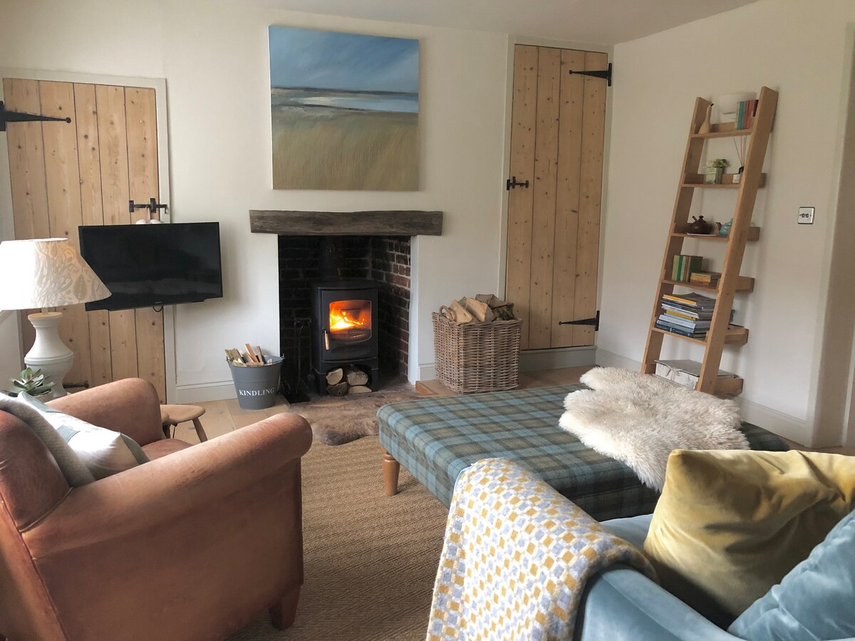 Escápate a esta encantadora casa de campo de sílex en el tranquilo pueblo de Stiffkey, a solo 5 minutos de Wells-next-the-Sea. Perfecta para parejas, la cabaña cuenta con una elegante cocina abierta con comedor, una acogedora sala de estar con estufa a leña y un baño con bañera y ducha en la parte superior. El dormitorio tiene una lujosa cama súper king. En el exterior, disfruta de un pequeño jardín delantero y aparcamiento privado (nota: derecho de paso compartido). Solo para adultos mayores de 21 años. No se admiten niños ni mascotas.