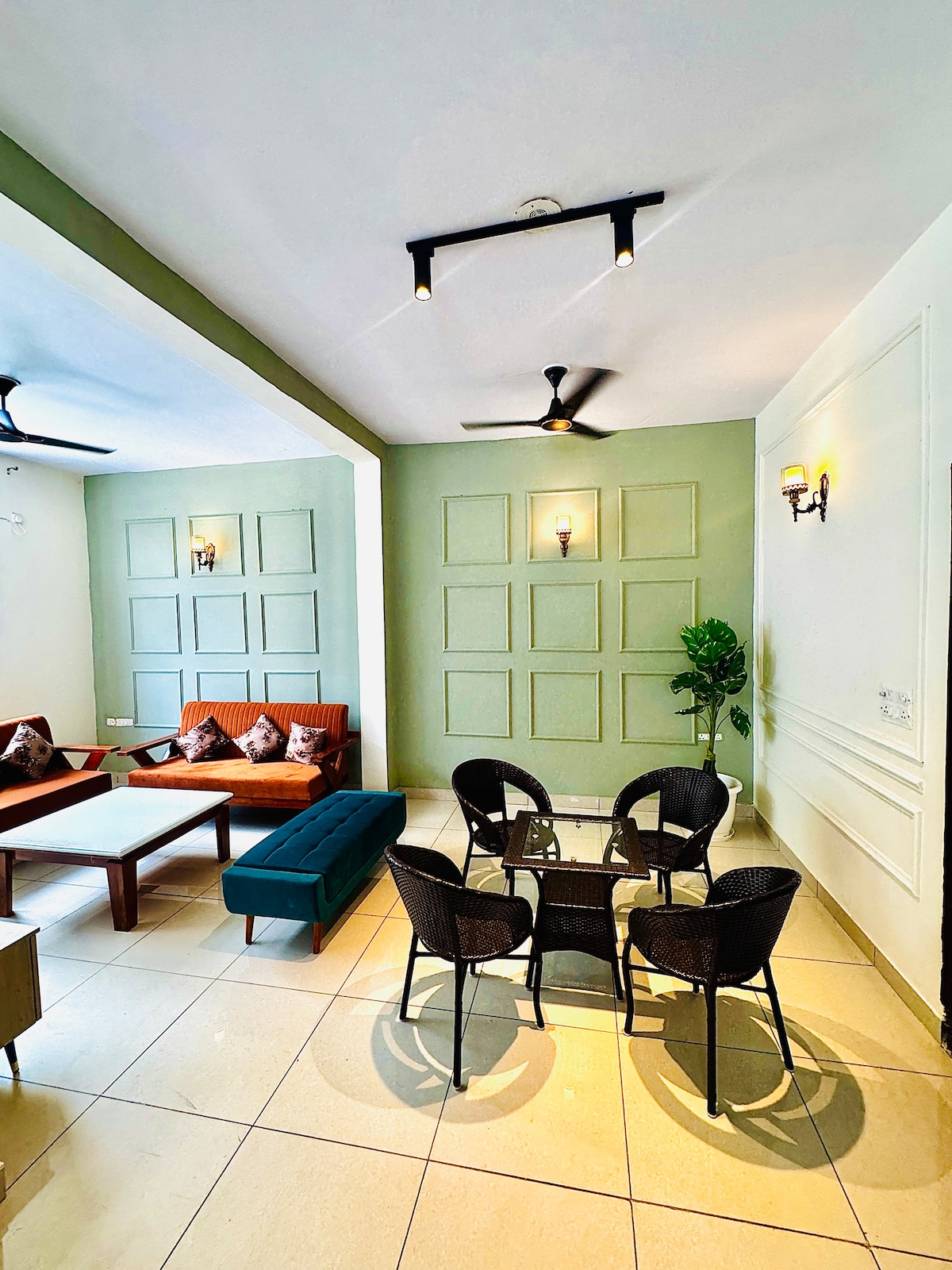 Relájate y desconecta en este bonito apartamento boho en la hermosa Gran Noida. Está elegantemente diseñado y equipado con todo lo necesario para una estancia refrescante. Los dos dormitorios están equipados con dos camas tamaño king y dos camas individuales con ruedas que permiten que hasta 6 huéspedes se alojen cómodamente. Ambos dormitorios tienen baños completos adjuntos. También hay una cocina bien surtida para todas tus necesidades culinarias. ¡La gran terraza es un lugar perfecto para disfrutar de las frescas noches de verano y crear recuerdos con tus seres queridos!