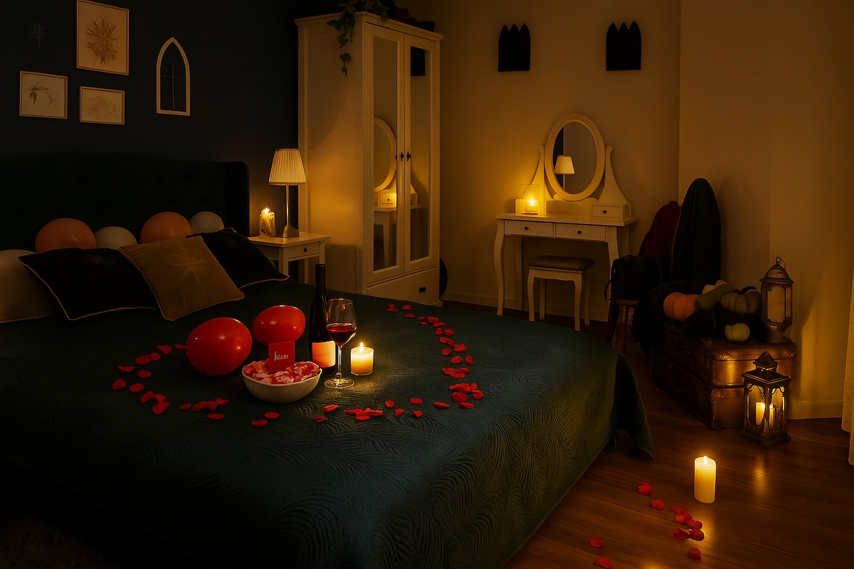 Apartament na poddaszu (urocze skosy), wśród drzew, przy stawie i lesie. 12 min. pieszo do Stadionu. Z balkonu piękny widok na las i jeziorko (latem zasłonięte ścianą drzew). Do wyłącznej dyspozycji Gości jest mieszkanie (bez małego pokoju, który jest zamknięty): duży salon z miejscem do spania (i prywatnym kinem: projektor + ekran) i w pełni wyposażonym aneksem kuchennym oraz wyjściem na balkon, łazienka i przedpokój. Osiedle "Parkowa Ostoja" to jedno z najpiękniejszych miejsc we Wrocławiu!