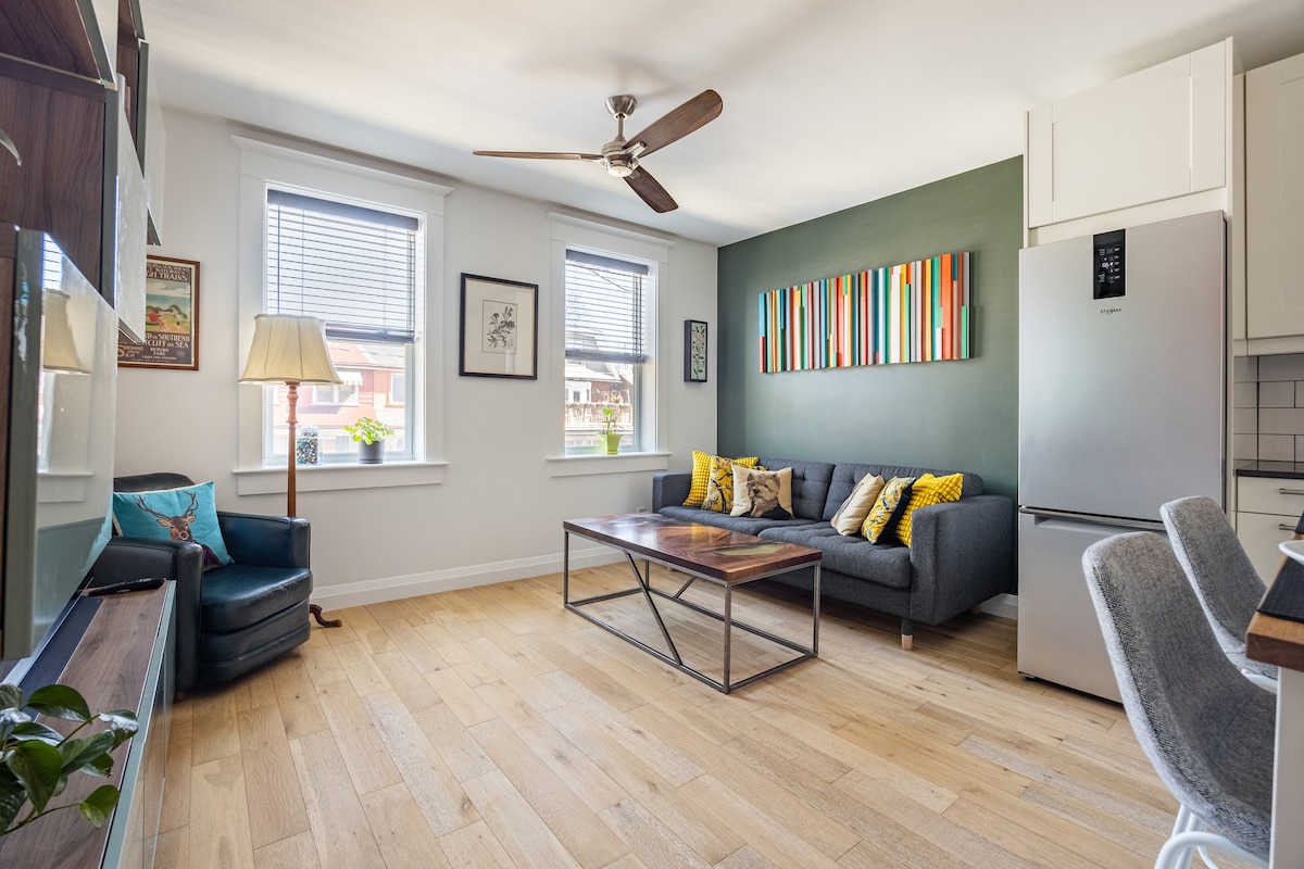 ¡✦Un espacio acogedor en el corazón de Leslieville! Esta acogedora suite cuenta con techos de 2,7 metros y cálidos pisos de madera en todas partes. Diseñado pensando en la comodidad, incluye todo lo que necesitás para una estadía excelente: una cocina amplia y elegante, una sala de estar acogedora, una mesa de comedor y sillas con estilo, dos dormitorios bien equipados con camas queen y dos baños completos, cada uno con una ducha de pie convenientemente ubicada fuera de los dormitorios. Se incluye un espacio de estacionamiento dedicado y el tránsito está fuera de la puerta.