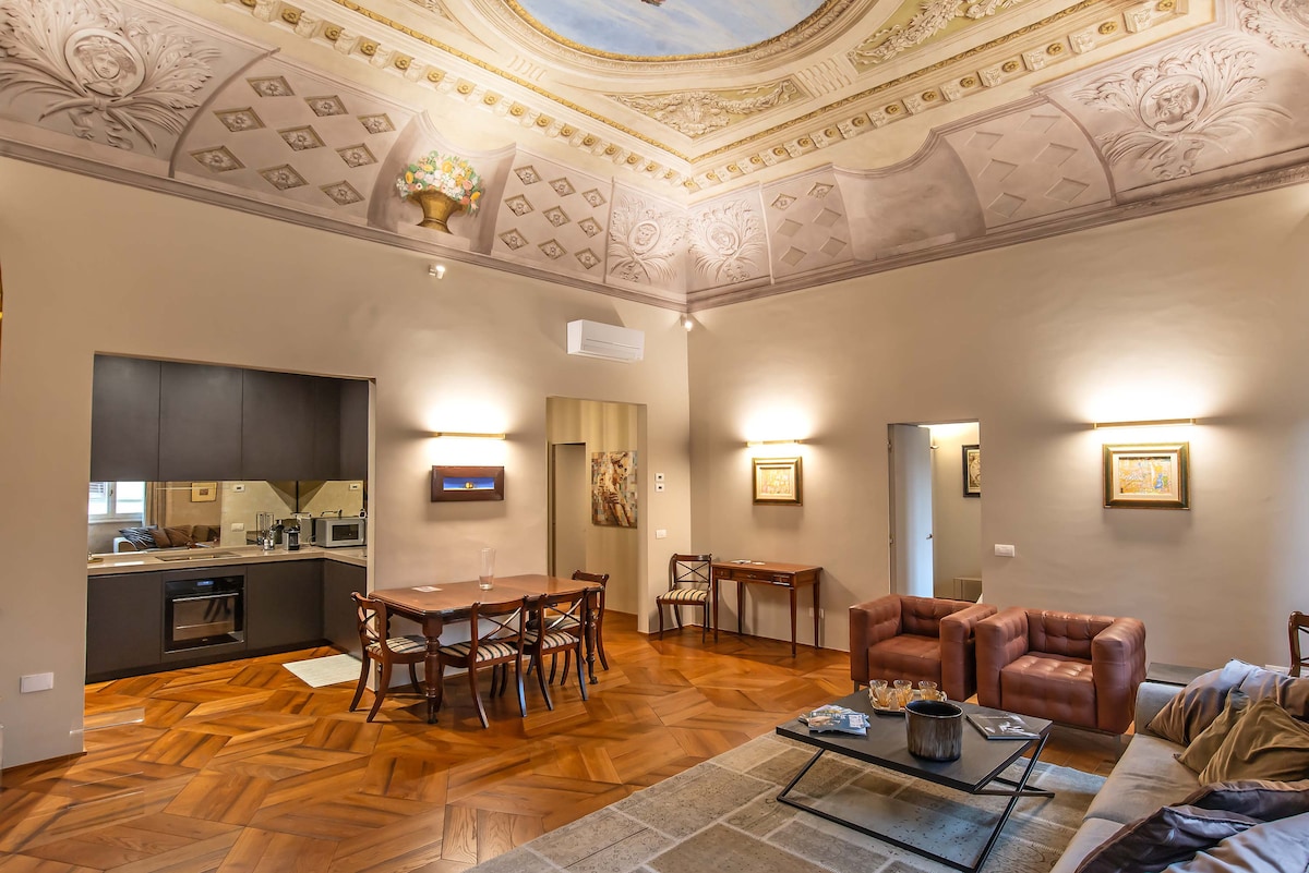 Tuscan Retreat: Design meets Tradition ⚜️ Experience authenticity in this bright apartment featuring exposed beams and original terracotta. Relax in the spacious living room or the finely detailed master bedroom. Unique Comforts: • Dual Bathrooms: Modern black marble + rustic with bathtub. • Amenities: Full kitchen, AC, and ultra-fast Wi-Fi. A peaceful oasis in the heart of Florence, perfect for your stay. Book your Florentine experience now!