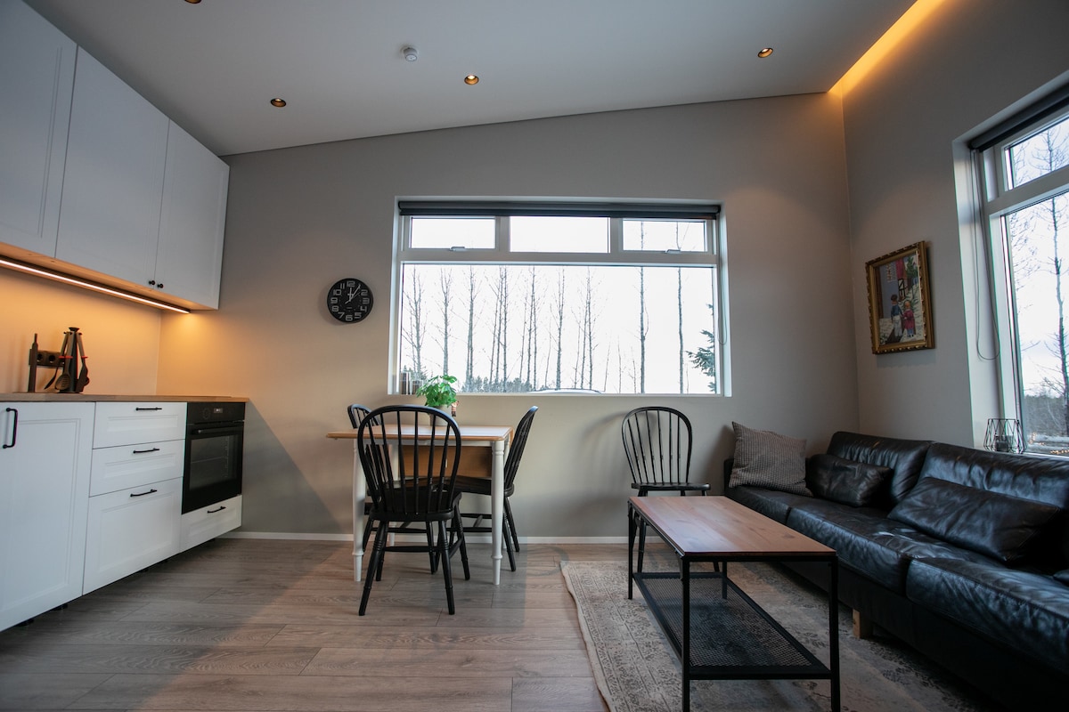 Take a break and unwind in our peaceful annex, conveniently located for hikes to the Reykjadalur Hot Spring Thermal River, and a wealth of amenities in Hveragerði. The annex has a private entrance, king size bed, ensuite bathroom with shower and basic cooking facilities (added in January 2026). You will also have exclusive use of the garden hot tub, a tranquil escape nestled among the birch and aspen trees. Please note that we have a very friendly dog who you may meet!
