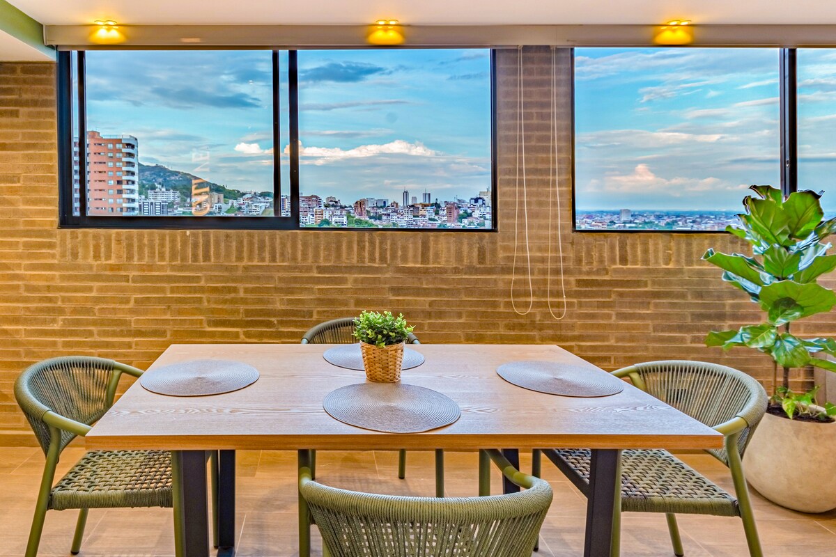 Descubrí un espacio moderno y acogedor en este dúplex con vistas a la ciudad. Disfrutá de un ambiente cálido con un living, un comedor, una cocina totalmente equipada y dos baños privados, que ofrecen todo lo que necesitás para una estadía tranquila. Ideal para 1 a 4 huéspedes que buscan comodidad y una ubicación privilegiada. A pocos minutos del Parque del Perro, donde podés disfrutar de la gastronomía de Cali, cafés únicos y la vibrante cultura de la salsa.