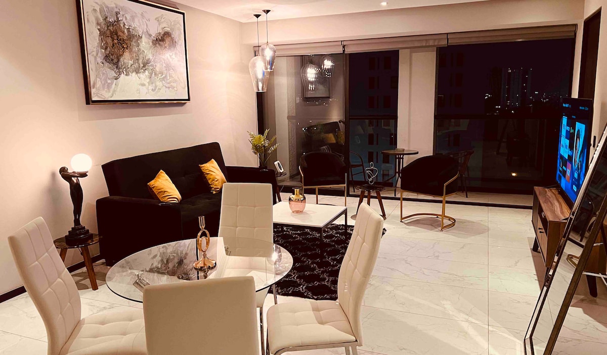Lujoso departamento en piso 19 Lobby 33. Muy amplio con 2 habitaciones (King y Queen), AC's, luces inteligentes, cortinas eléctricas, internet, amenidades (alberca) con todo lo que necesitas para una estancia de un día o varios meses. La torre cuenta con centro comercial, restaurantes y acceso caminando a la plazas Andares, Landmark y Acueducto, y Bosque Colomos. Sanitizamos completamente antes de tu llegada. Favor de leer el reglamento previo a reservar.
