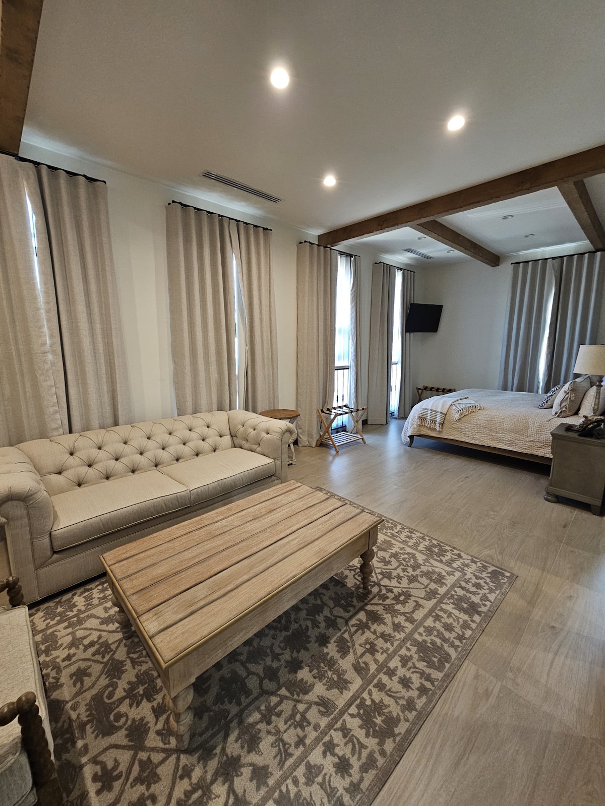 Te encantará la decoración elegante de este encantador lugar para hospedarte. disfruta de magicos atardeceres desde el jacuzzi en el balcon de tu habitacion, consta de una cama king size y un sillon de dia, cocineta, regadera de lluvia, tv con internet. Puedes obtener un fogatero de Gas en el balcón por 10 dlls, puedes agregar a tu mascota en la reserva, tiene costo adicional.