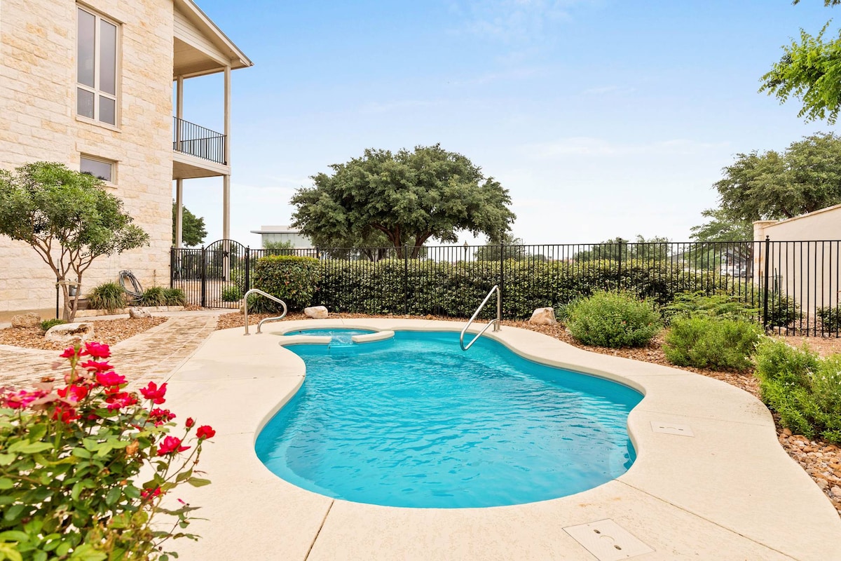 Watch breathtaking sunrises over Canyon Lake from our newly renovated 2 bedroom, 2.5 bath home. This condo features two private balconies, a BBQ, fully stocked kitchen, washer, dryer, wet bar, and smart TVs. Great for long term stays, wedding travelers, and weekend getaways. Conveniently located one block away from Lakeside Golf Club (public course) and 1.5 miles away from Comal Park Beach and Boat Ramp 3. Wake up to a beautiful sunrise over the lake while deer roam just a few feet away.