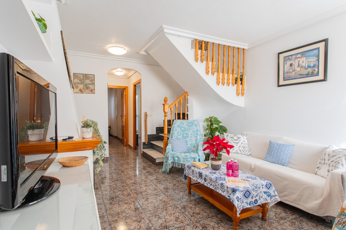 Escape to a serene coastal retreat at this charming three-story home in the exclusive beachfront community of Tamarit Beach, Santa Pola. This cozy property, with three beautifully appointed bedrooms and two bathrooms, is perfect for families or groups looking to relax while enjoying the Mediterranean atmosphere.