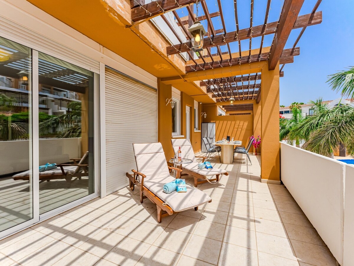 Apartamento de una planta en un complejo cerrado con una Piscina De Agua De Mar Climatizada y una Piscina De Relax De Agua Caliente de 12 metros, en un vecindario muy tranquilo y con una Red Wifi "omada" Profesional, ideal para descansar o teletrabajar. A 10 minutos de dos de las mejores playas de la isla y junto a un pueblo pesquero con fantásticos restaurantes locales. Muy equipada para sentirse como en casa.<br><br>