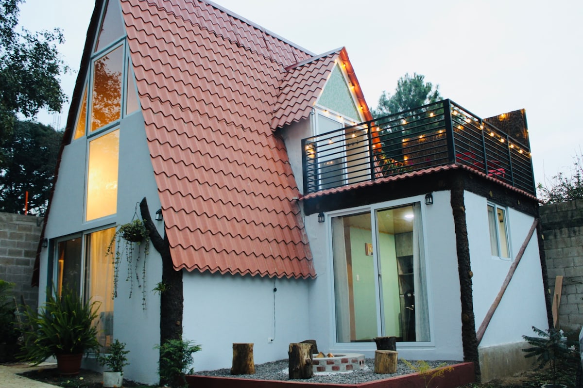 Escápate a nuestra tranquila cabaña, en el corazón de la naturaleza. Incluye área de fogata, churrasquera, internet, juegos de mesa, futbolito, minibillar, una cocina totalmente equipada y ducha con agua caliente, Smart TV de 32". Lavadora/secadora disponible. Aceptamos mascotas, ¡haz de este tu retiro perfecto! Convenientemente ubicada a 13.5 km de Antigua y 31 km de la ciudad capital. carretera asfaltada y muy accesible.